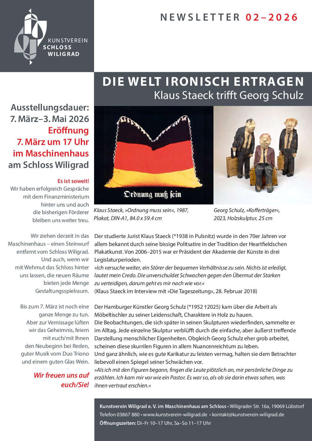 Text und Plakat vom Kunstverein Schloss Wiligrad